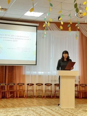 С требованиями ФГОС ДО к организации ранней профориентации дошкольников в условиях дошкольной образовательной организации и опытом работы своего педагогического коллектива познакомила Костина Ирина Владимировна, заместитель заведующего МБДОУ № 4.