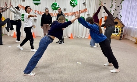 В ходе мастер-класса участники на практике познакомились со всеми этапами обучения детей парным упражнениям.